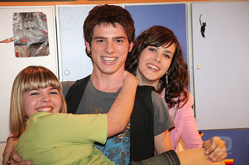 Óscar Sinela, Irene Sánchez y Sandra Blázquez bromean en la presentación de la tercera temporada de 'Física o Química'.