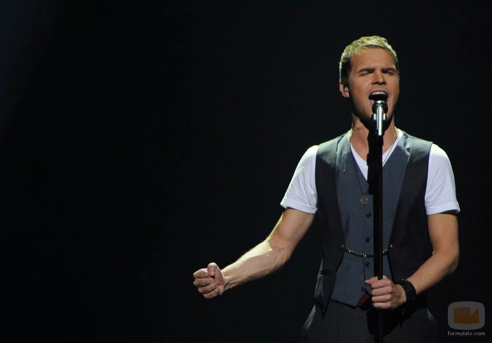 El representante de Estonia canta "Kuula" durante su actuación en el Festival de Eurovisión 2012 en Baku.
