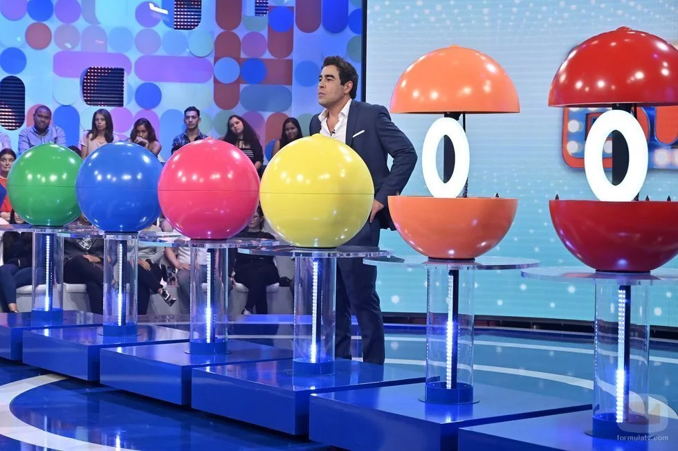 Pablo Chiapella, presentador de 'El bribón', durante la tercera fase del programa, en la que los concursantes han de ordenar un panel de seis bolas de colores evitando la que contiene el bribón.