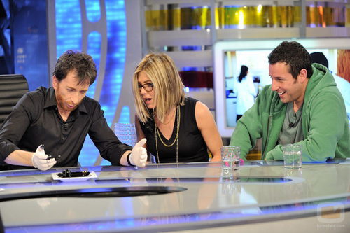 Pablo Motos experimenta con Jennifer Aniston y Adam Sandler