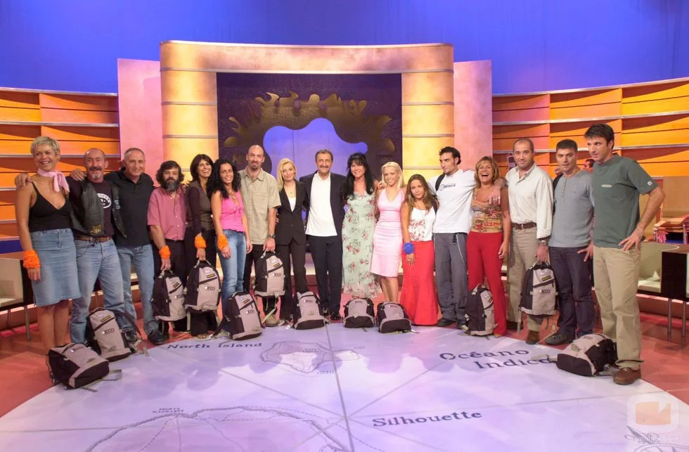 Paco Lobatón con los concursantes de la segunda edición de 'Supervivientes: Expedición Robinson'