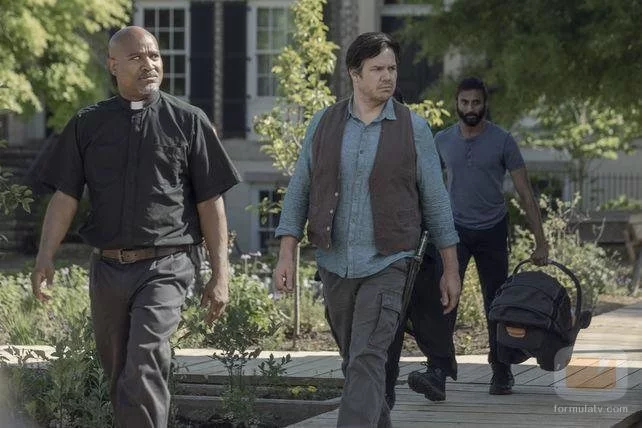 El padre Gabriel Stokes, el doctor Eugene Porter y Siddiq en la décima temporada de 'The Walking Dead'