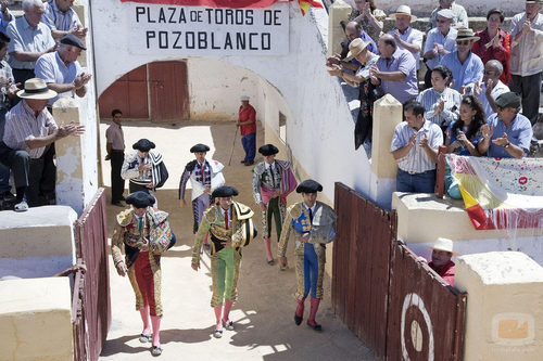 Paquirri (Antonio Velázquez) entra a la plaza de toros de Pozoblanco en una escena de la tv movie 'Paquirri' de Telecinco.