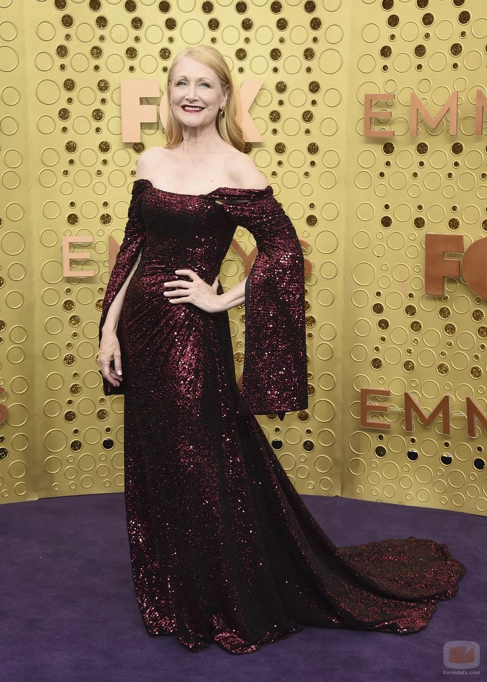 La actriz Patricia Clarkson, nominada a un Emmy por su papel en 'Heridas abiertas', posa en la alfombra roja de los Premios Emmy 2019.