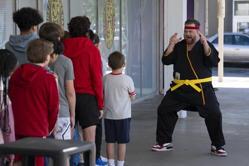 El actor Paul Walter Hauser (Raymond) en una foto promocional del capítulo 'Exdegenerado' de la serie 'Cobra Kai'.