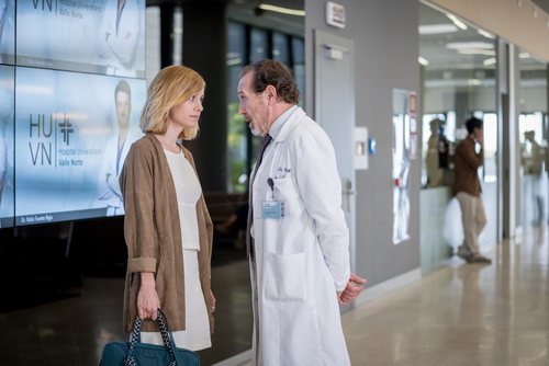 Paula Díaz junto al director Gerardo en la primera temporada de 'Hospital Valle Norte'