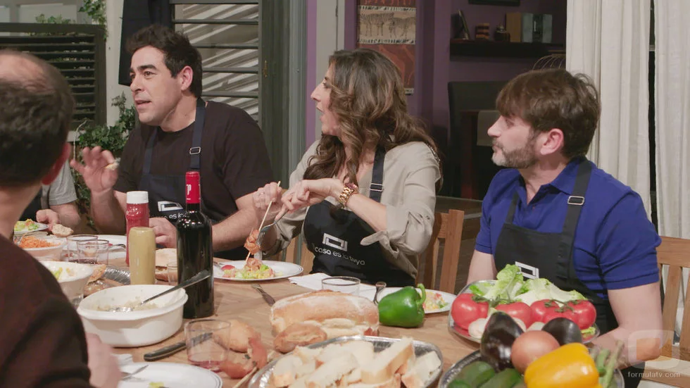 Paz Padilla, Pablo Chiapella y Fernando Tejero ('La que se avecina') comen en un programa de 'Mi casa es la tuya'