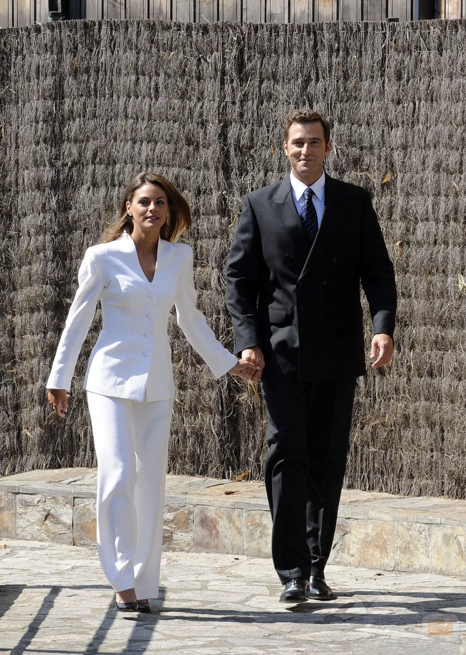 Amaia Salamanca y Fernando Gil simulan la petición de mano de los Príncipes de Asturias en la tv movie 'Felipe y Letizia'.