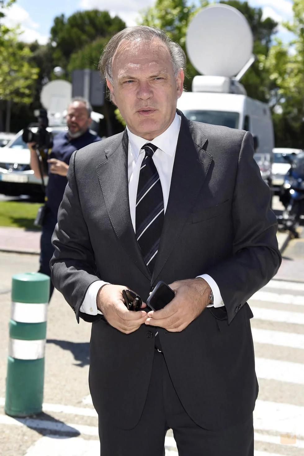 Pedro Piqueras en el velatorio durante el entierro de Jesús Hermida