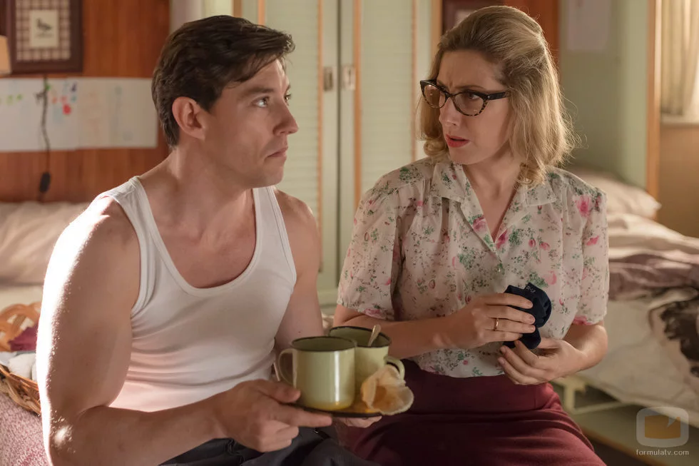 (4x01) Los personajes de Pedro y Rita, interpretados por Adrián Lastra y Cecilia Freire, conversan en el primer episodio de la cuarta y última temporada de 'Velvet'.