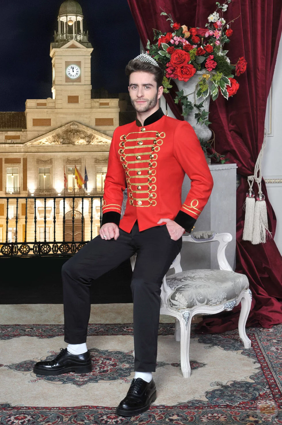 Con el traje de un soldadito de juguete, el juez de 'Cámbiame' aparece en la promoción de las Campanadas 2015 de Mediaset en las que participa.