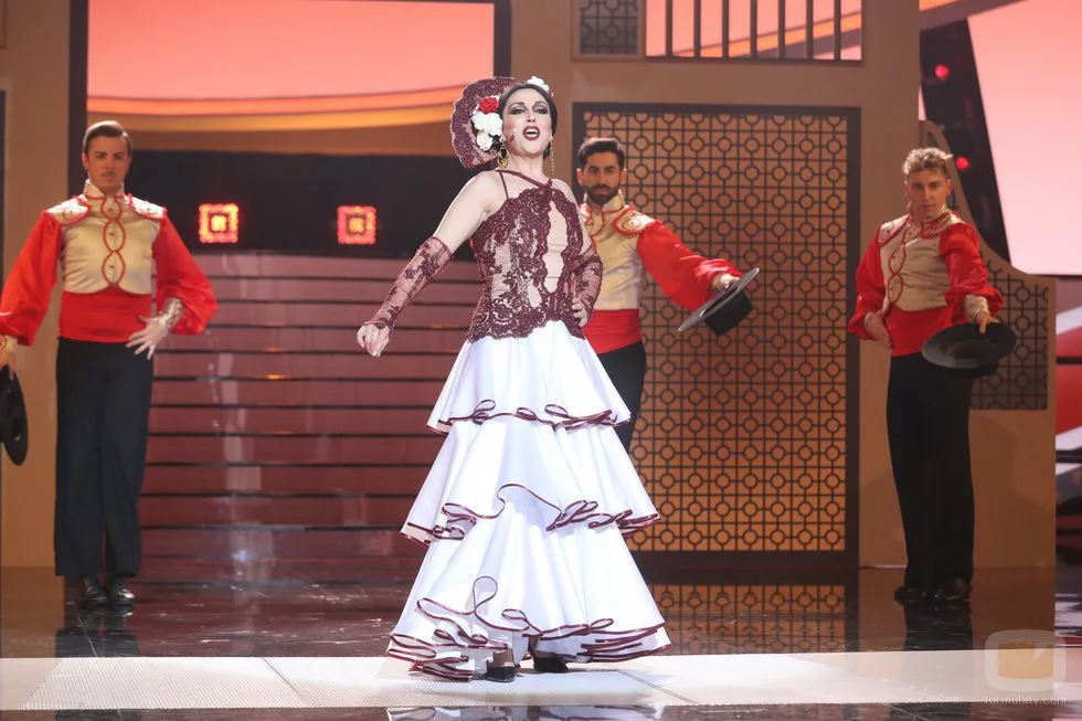 Pepa Aniorte, que se convirtió en la sexta finalista de 'Tu cara me suena', interpreta "El beso" como Esperanza Roy.