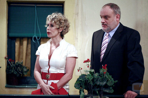 Miríam Díaz Aroca es la pícara Pepa, carnicera del mercado de San Cosme y Juanma Lara interpreta a Fito, en el capítulo "Saliendo del armario atacan los bichos y un nuevo negocio" de la serie 'A ver si llego'.