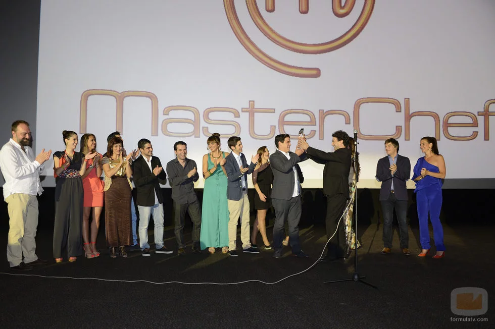 El concursante recibe el galardón ante la atenta mirado de sus compañeros y el equipo del programa.