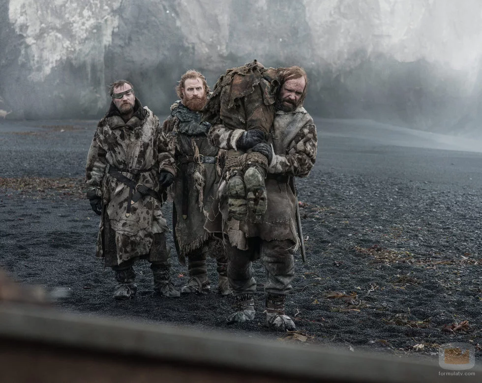 El Perro, Tortmund y Beric Dondarrion transportan a un Caminante Blanco atrapado durante el 7x06 de 'Juego de Tronos'.