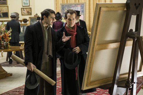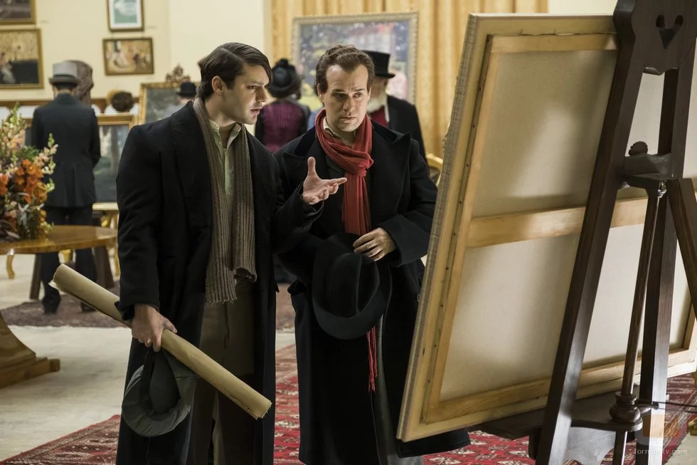 Los actores Alex Rich y T. R. Knight observan un cuadro como sus respectivos personajes durante la segunda temporada de 'Genius'.