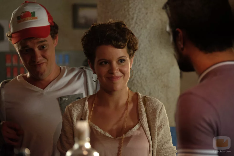 (01x07) Pilar (Andrea Ros) y Sergio Rueda (Federico Aguado) mantienen una conversación alegre con Lucas (Jesús Castro) para que éste olvide sus problemas.