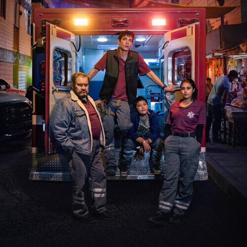 Sergio Bautista, Renata Vaca, Diego Calva y Joaquín Cosio aparecen en una foto promocional del capítulo 1x01 de 'Familia de medianoche'.