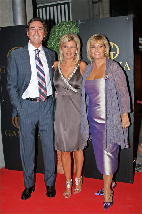 El periodista deportivo Pipi Estrada celebra el 40 cumpleaños de Terelu Campos en agosto de 2005 junto a la madre de ésta, María Teresa Campos.