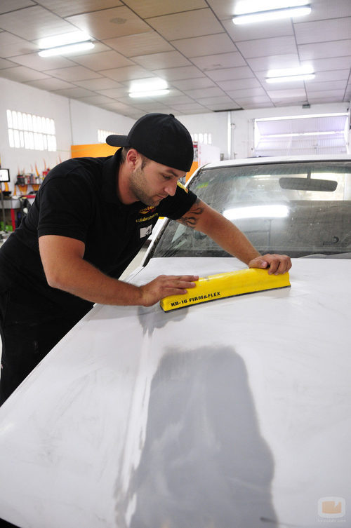 Pisha encera un coche en el taller de 'MTV Tuning España'