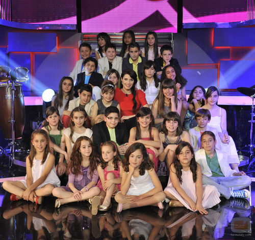 Foto de los concursantes en el plató de 'Cántame una canción' de Telecinco, con Pilar Rubio. Entre las participantes se encuentra una joven Amaia Romero, ganadora de 'OT 2017'.