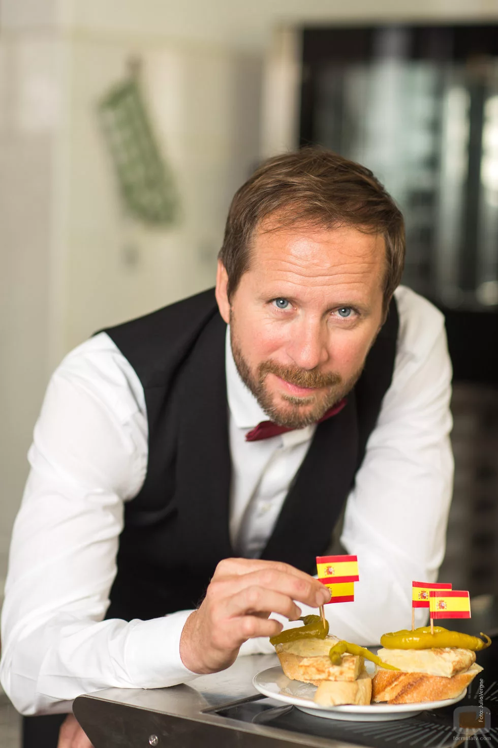 El actor Alberto López posa como Rafi, el camarero de 'Allí Abajo', la comedia de Antena 3 sobre vascos y andaluces.