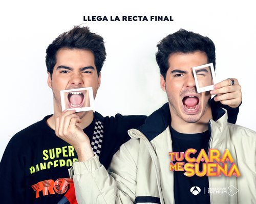 Gemeliers posan en este cartel para anunciar el regreso de 'Tu cara me suena 8', que llega a su recta final en Antena 3.