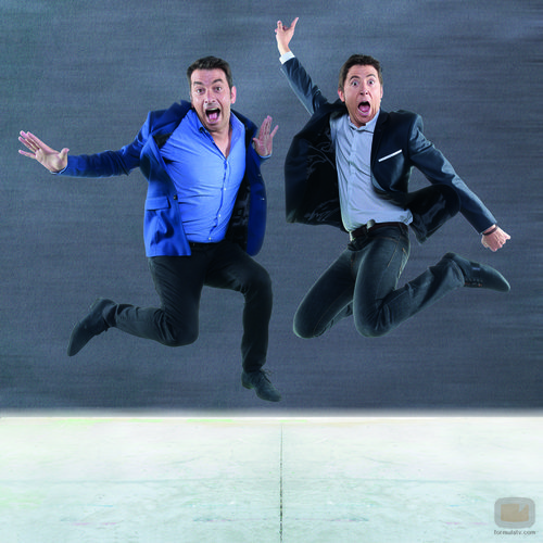 La pareja de presentadores se suelta el pelo y posa de manera informal durante la grabación de su primera promo para su nuevo programa.