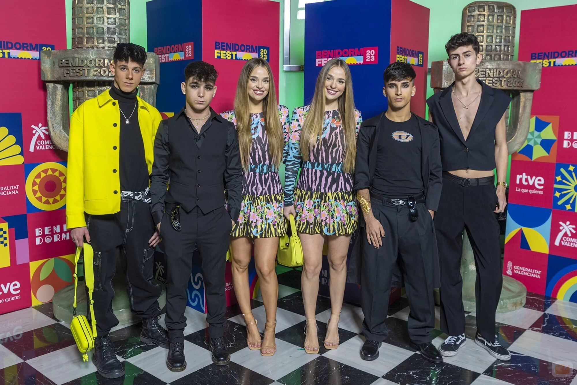 Posado de Twin Melody y su equipo, en la inauguración del Benidorm Fest 2023