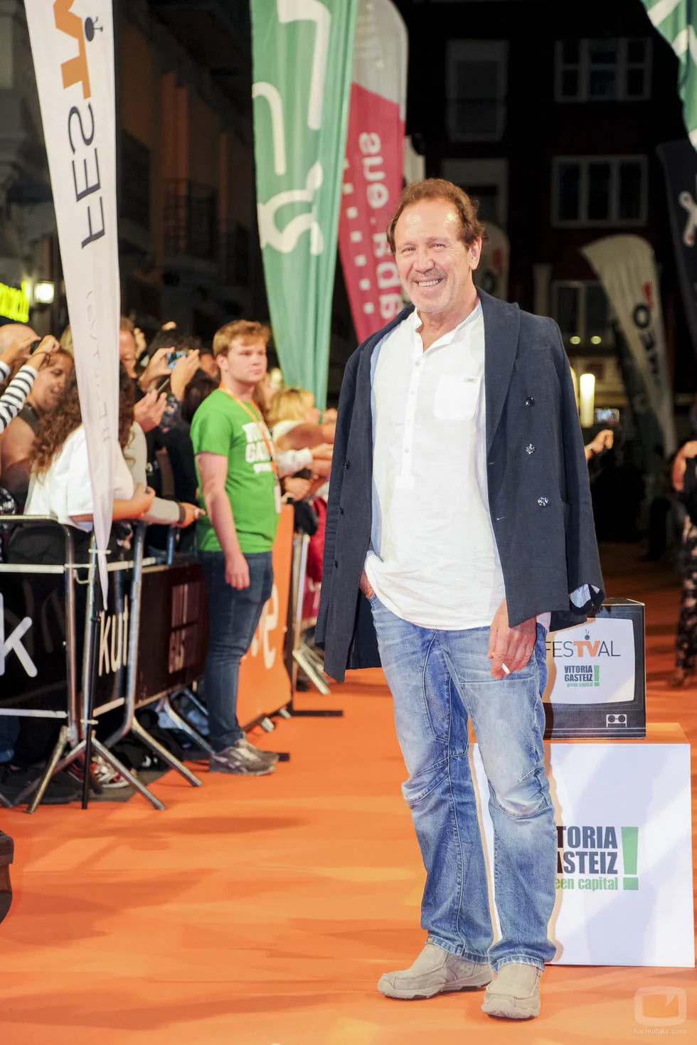 El actor Juan Gea, del 'Ministerio del Tiempo', se ha mostrado sonriente en uno de los poses en los que se le ha fotografiado en la alfombra naranja del FesTVal.