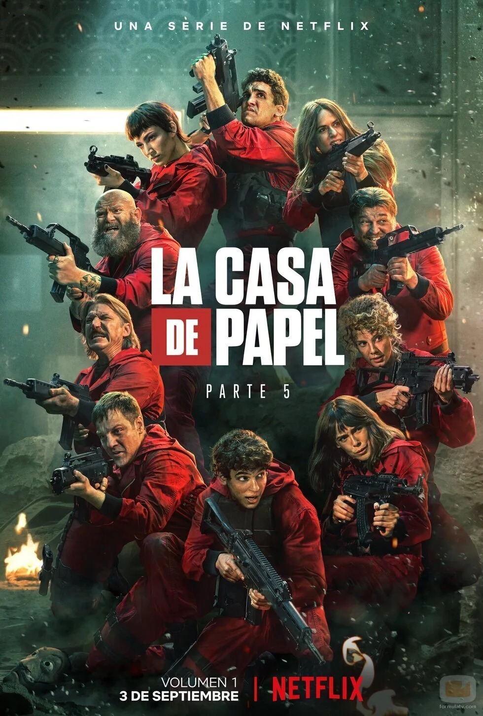 Los atracadores de la banda de El Profesor protagonizan el cartel promocional del primer volumen de la quinta parte de 'La Casa de Papel'.