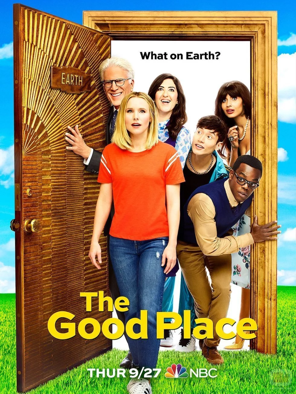 Póster de la tercera temporada de 'The Good Place' cuyo esperado estreno será el día 27 de septiembre de 2018. En la imagen se ve a los protagonistas, con Eleanor (Kristen Bell) a la cabeza, regresando a la Tierra.