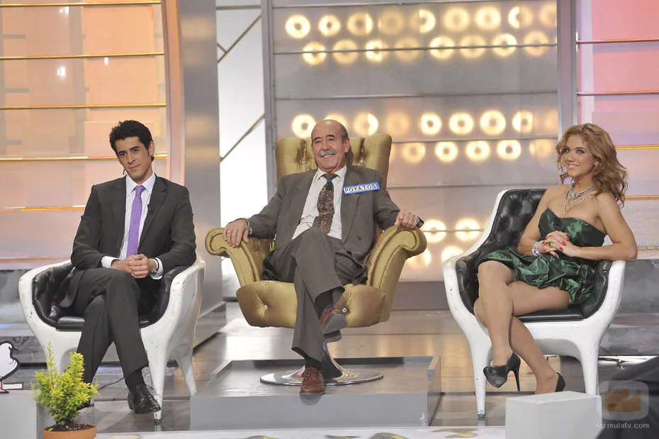 El tronista Poyatos, de 'Mujeres y Hombres Oro', junto a Víctor Janeiro y Beatriz Trapote.