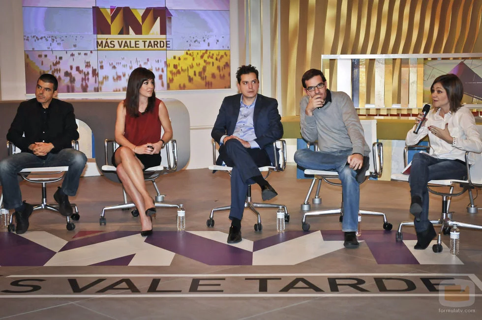 De izquierda a derecha: Manu Marlasca (jefe de investigación de laSexta), Mamen Mendizábal (presentadora), Mario López (director de antena), César González Antón (director de informativos y deportes) y Lucía Herranz (editora).