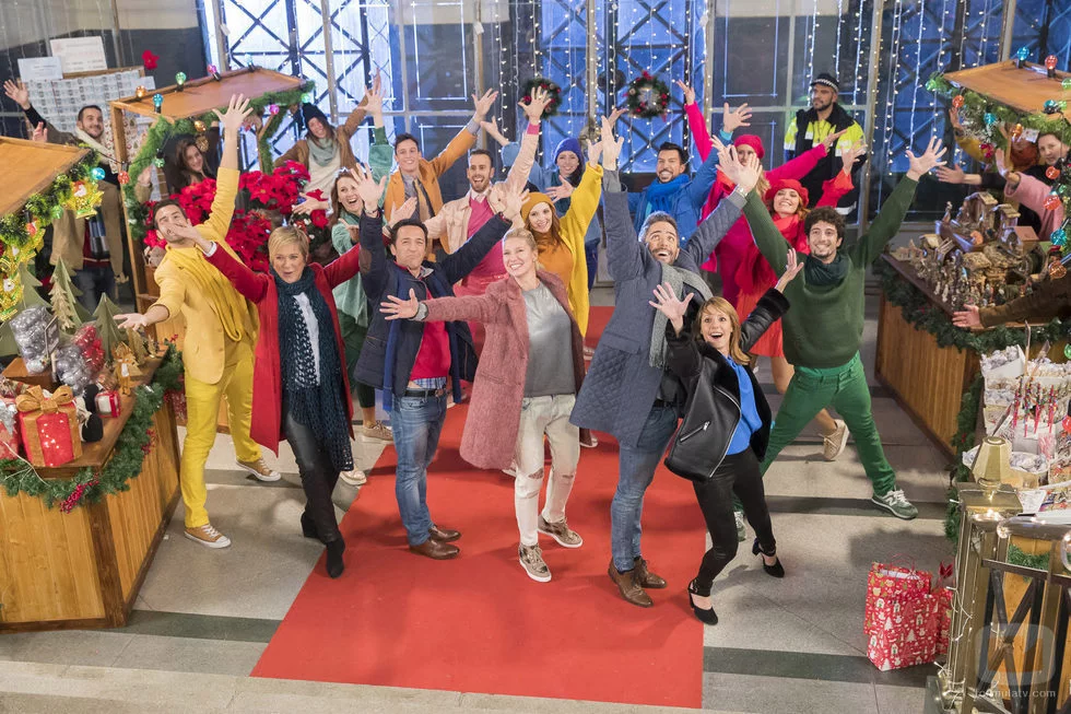 Anne Igartiburu, Inés Ballester, Roberto Leal y Jacob Petrus bailan junto a los bailarines en el especial navideño 'Telepasión'.