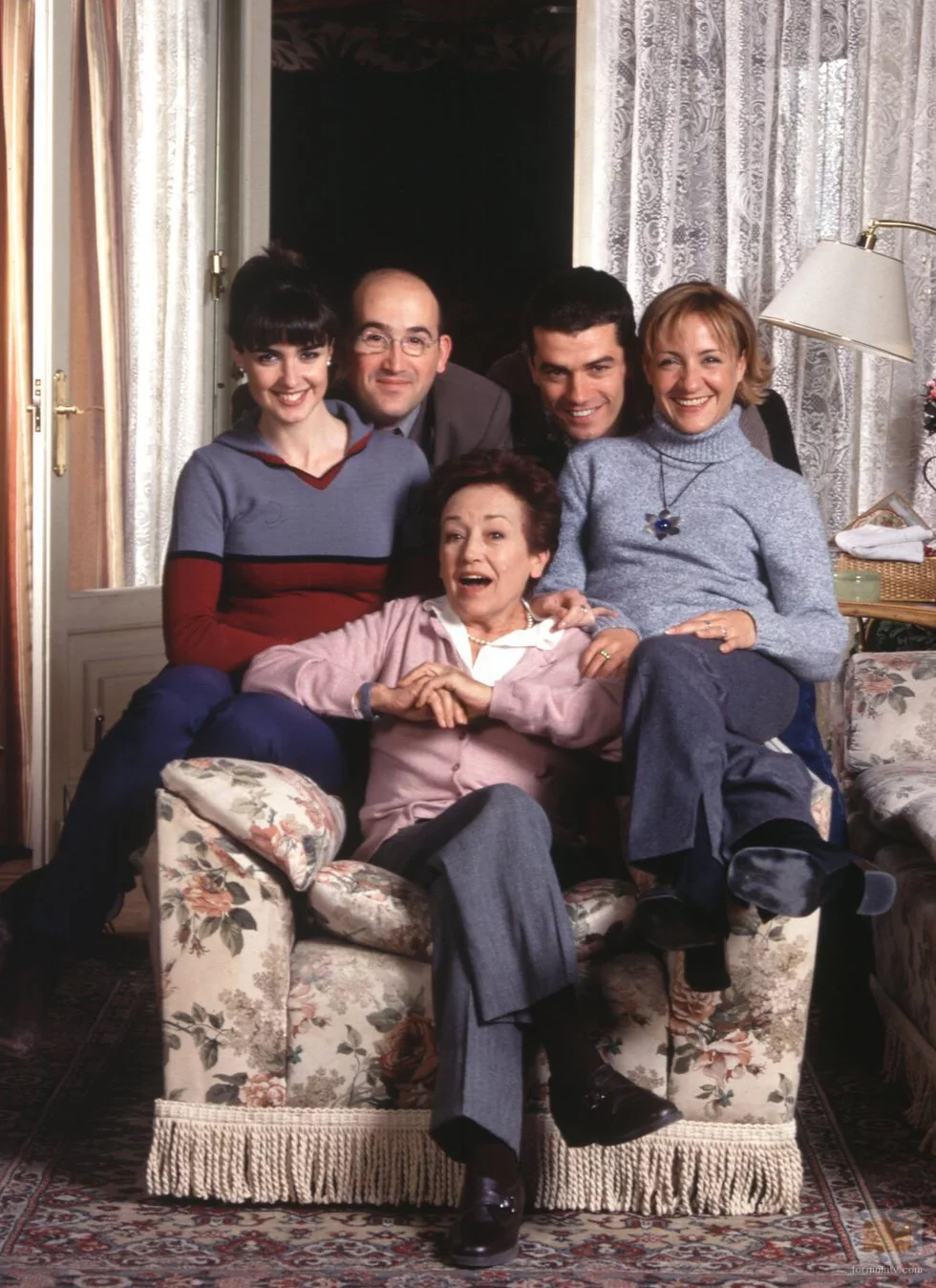 Javier Cámara, Toni Cantó, Blanca Portillo, Paz Vega y Amparo Baró, juntos en el mítico sillón de casa de Sole, personaje interpretado por Amparo Baró.