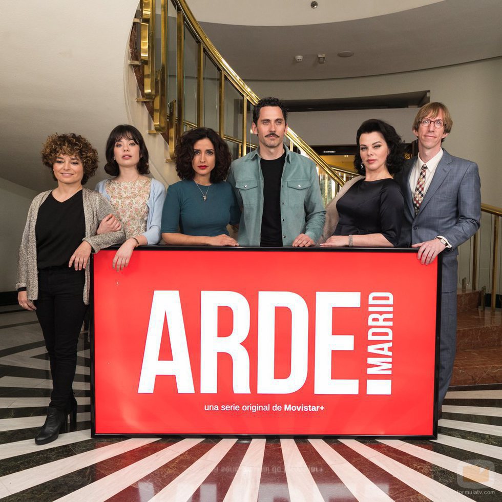 Los protagonistas de 'Arde Madrid' posan junto a Paco León y Anna R. Costa