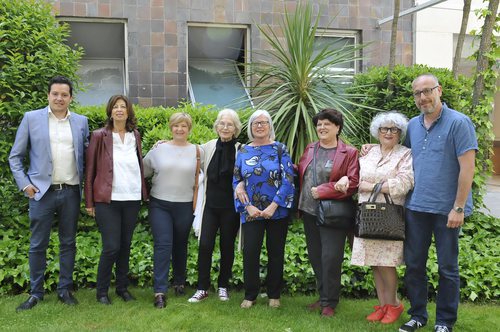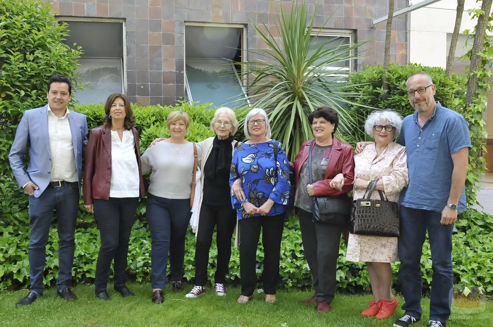 Seis de las protagonistas de 'Bienvenidas al norte y sur' posan con Mario López, Director de Antena de laSexta, y Santi González, director del programa.