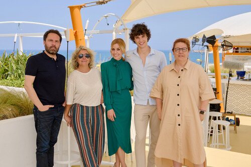 Aitor Gabilondo, Aurora Guerra, Alexandra Jiménez, Fernando Lindez y Arantxa Écija en el rodaje de 'Escándalo. Relato de una obsesión'.
