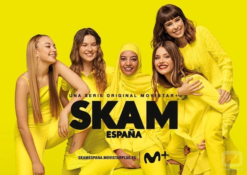 Irene Ferreiro (Cris), Celia Monedero (Viri), Hajar Brown (Amira), Nicole Wallace (Nora) y Alba Planas (Eva) en el póster promocional de la temporada 4 de 'Skam España'.