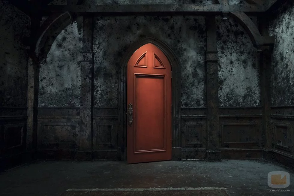 Una puerta roja siniestra de la casa de 'La maldición de Hill House'