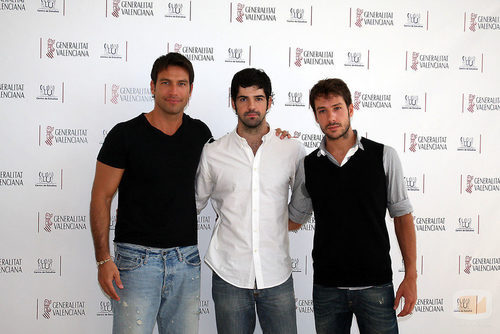 Rafael Amaya, Miguel Ángel Muñoz y Alejandro Albarracín en la presentación del comienzo del rodaje de 'La piel azul', la tv movie de Antena 3.