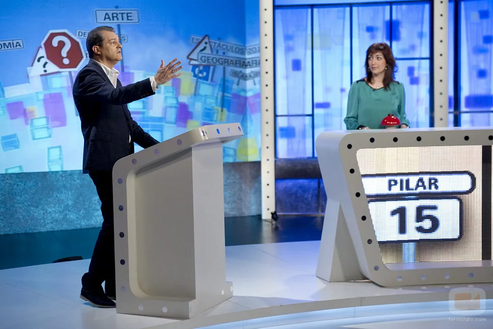 El presentador gesticula durante las grabaciones del concurso '¿Conoces España?'.