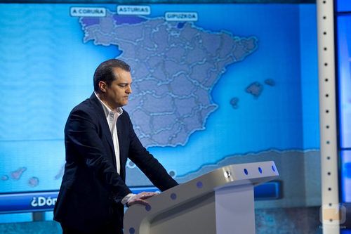 Ramón Garcia, concentrado, en el plató del concurso de La 1