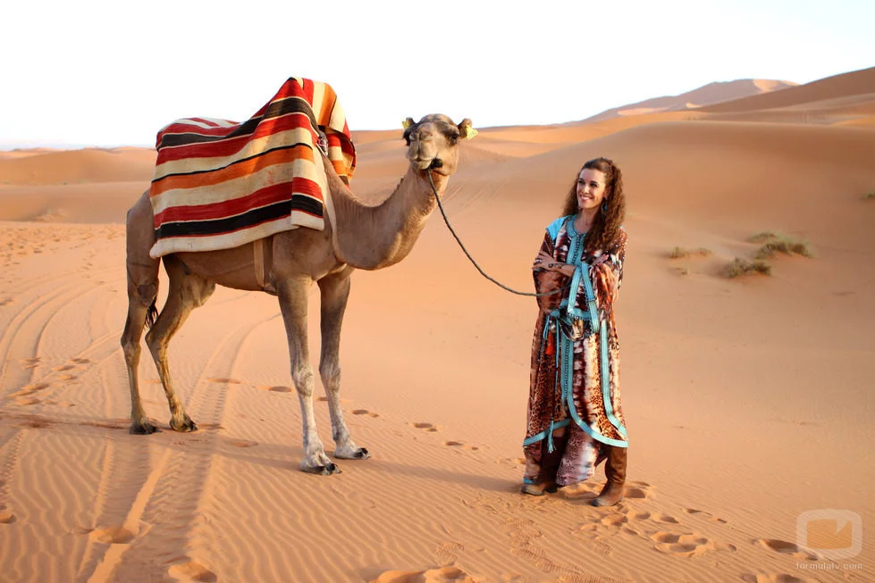 Raquel Sánchez Silva, presentadora de 'Expedición imposible', posando con un camello