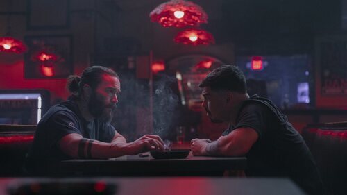 Tom Pelphrey y Raúl Castillo aparecen en una escena del capítulo 1x02 de 'Task', la serie de televisión de HBO.