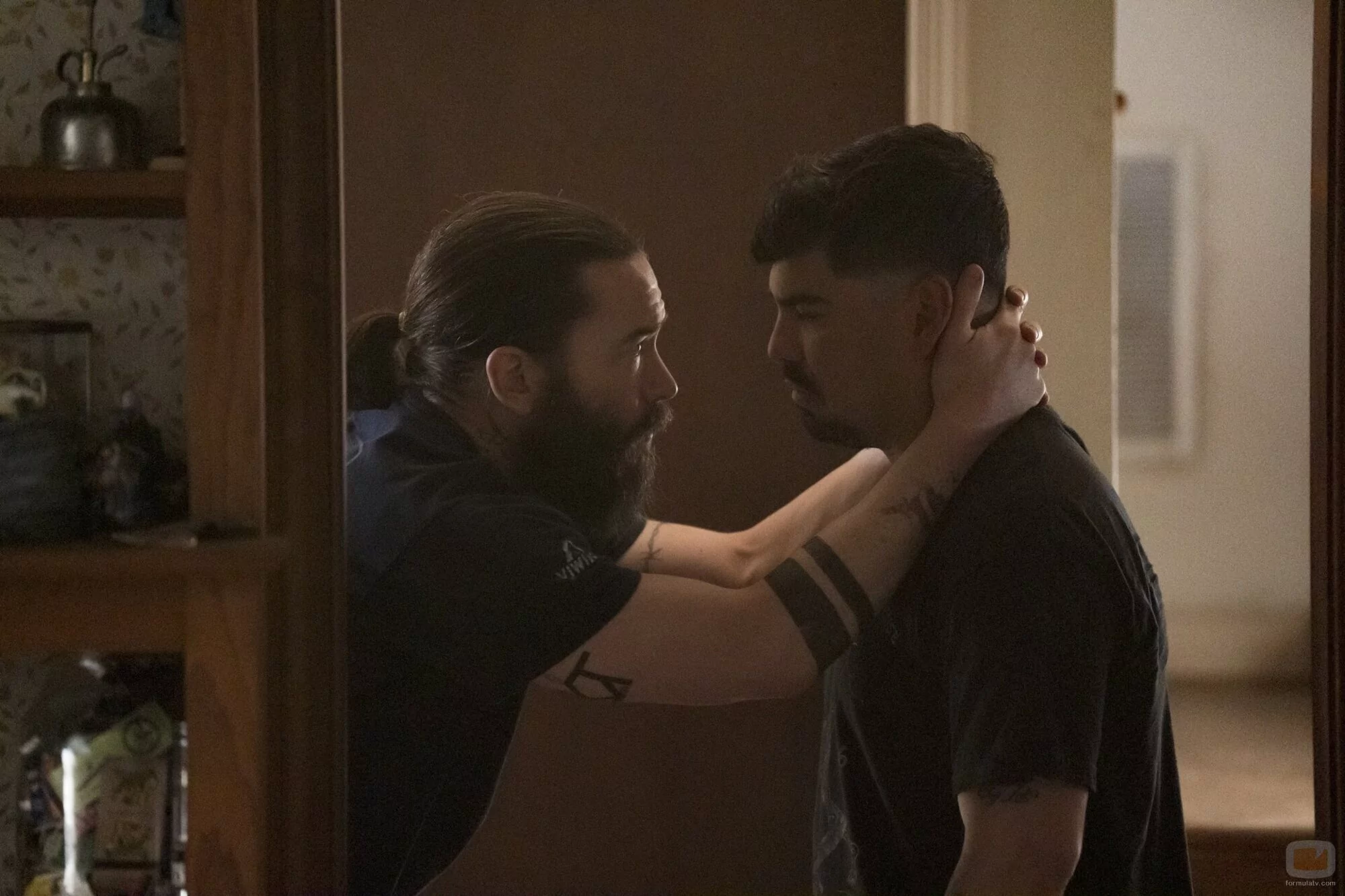 Tom Pelphrey y Raúl Castillo aparecen en una imagen promocional del episodio 'Declaraciones Familiares' de la serie 'Task'.