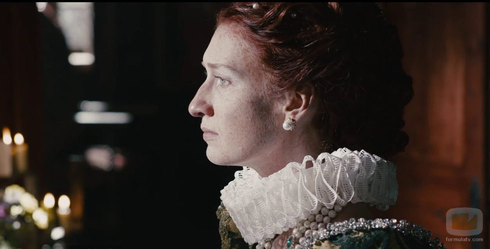 Rebecca Scott, que da vida a Isabel I, con mirada perdida en 'Reinas, virgen y mártir'