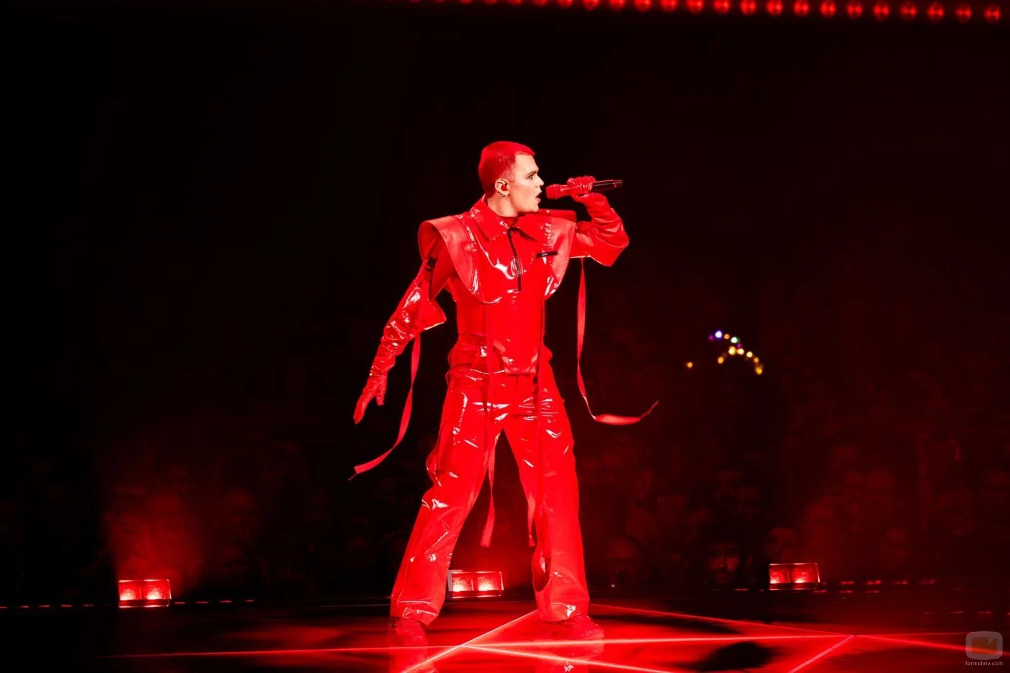 El cantante Red Sebastian canta 'Strobe Lights' en la primera semifinal del Festival de Eurovisión 2025, donde no consiguió clasificarse.
