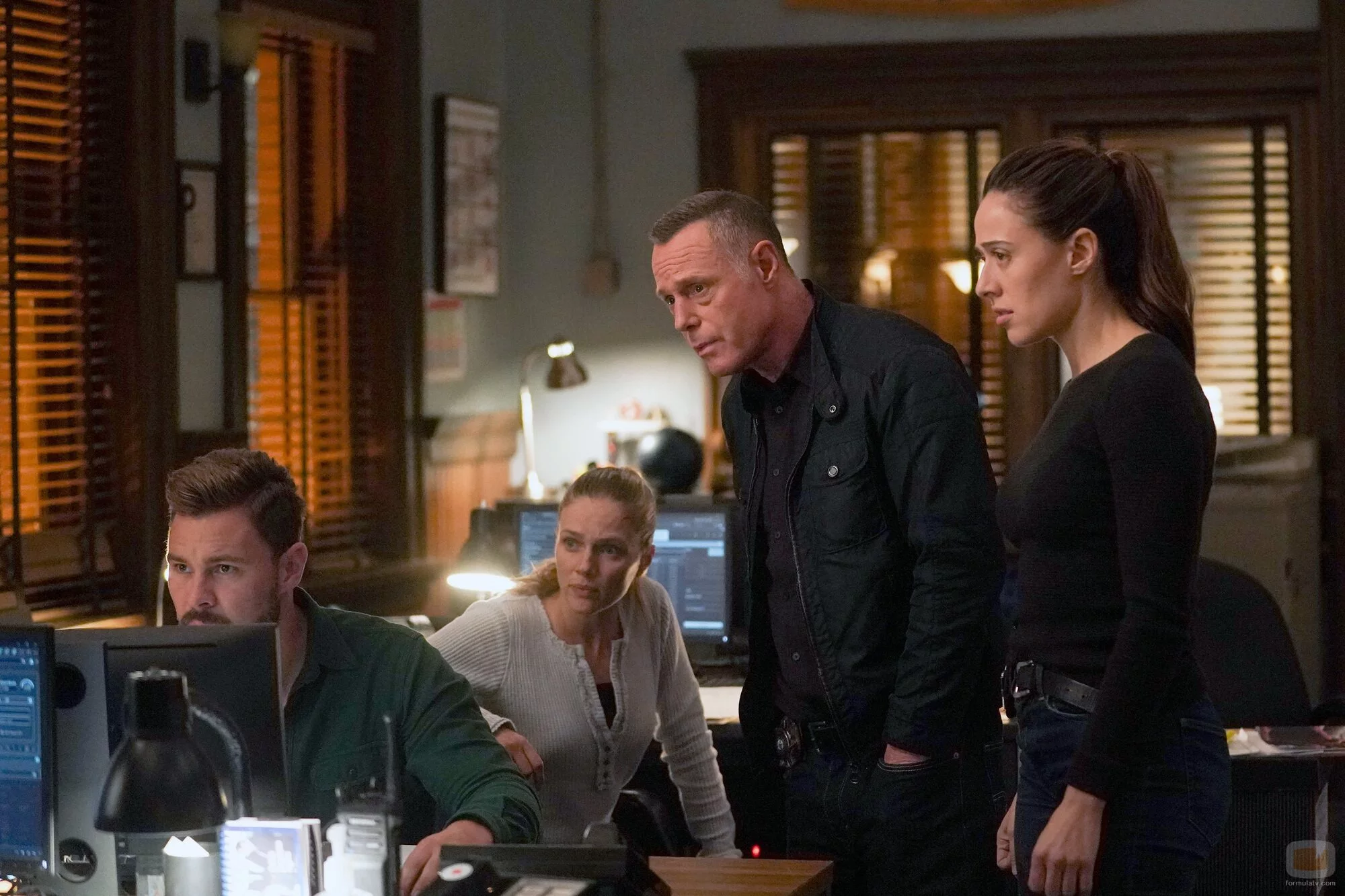 Patrick Flueger, Jason Beghe, Marina Squerciati y Tracy Spiridakos aparecen en una imagen del episodio 10x06 de 'Chicago PD'.